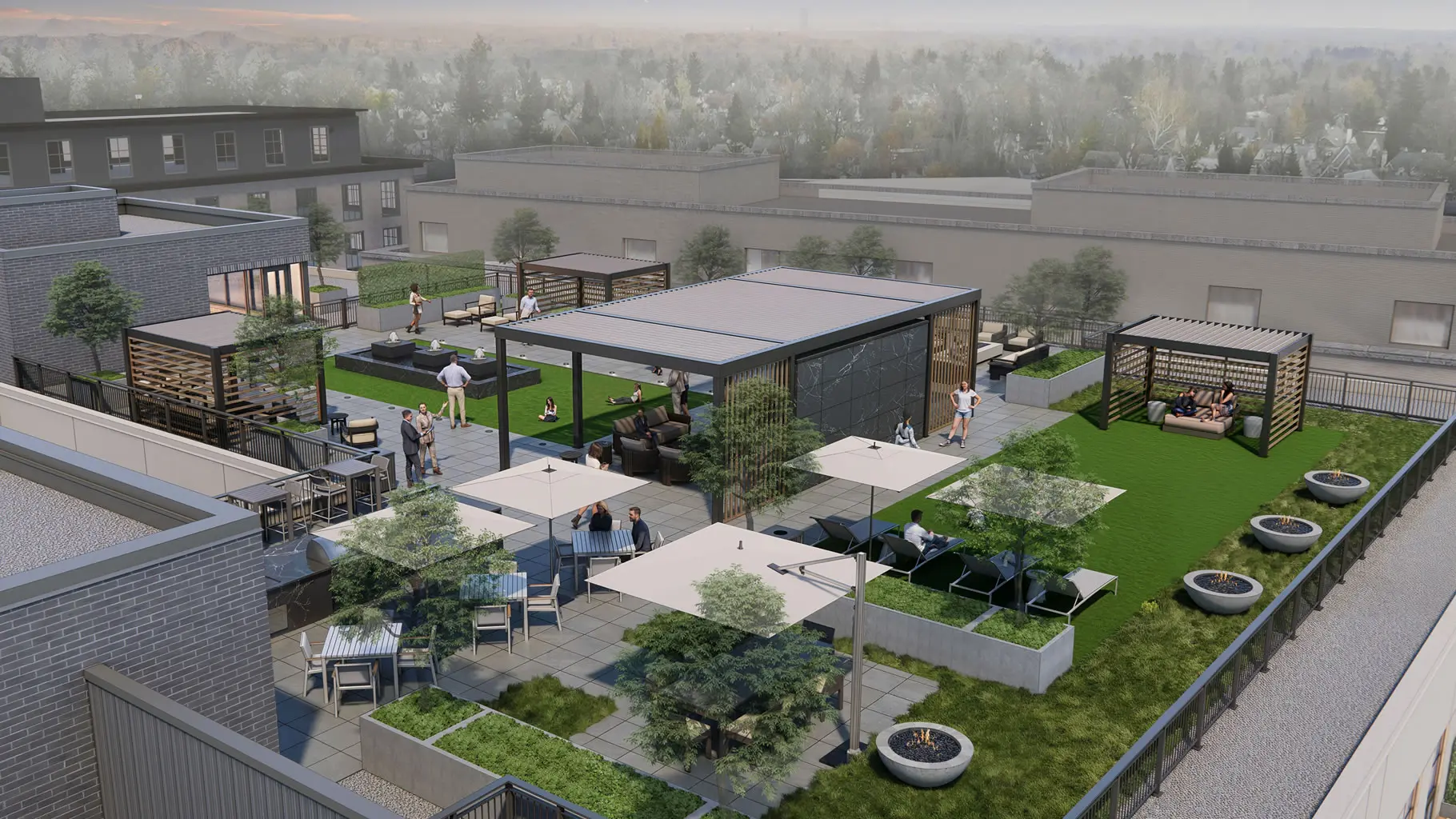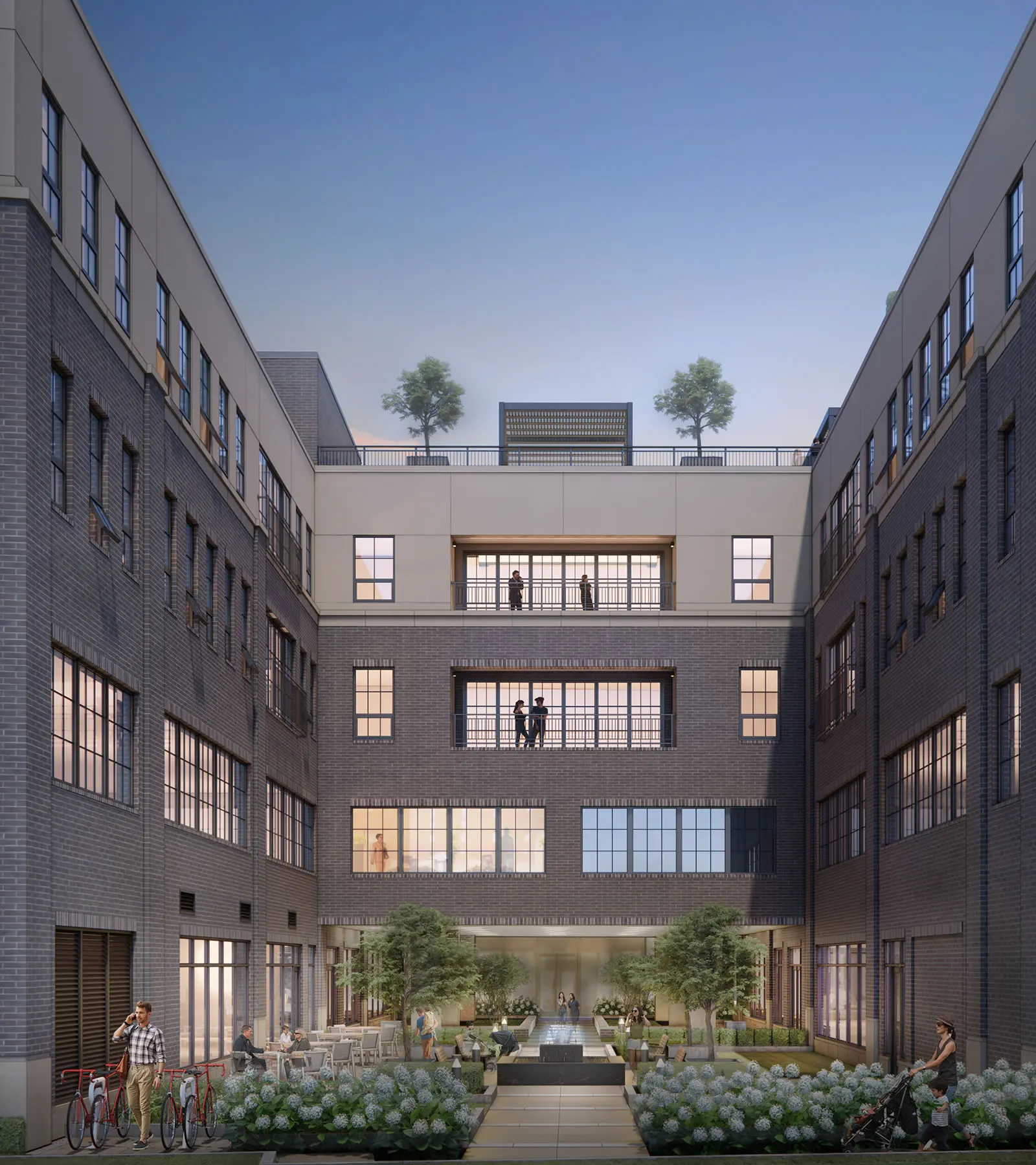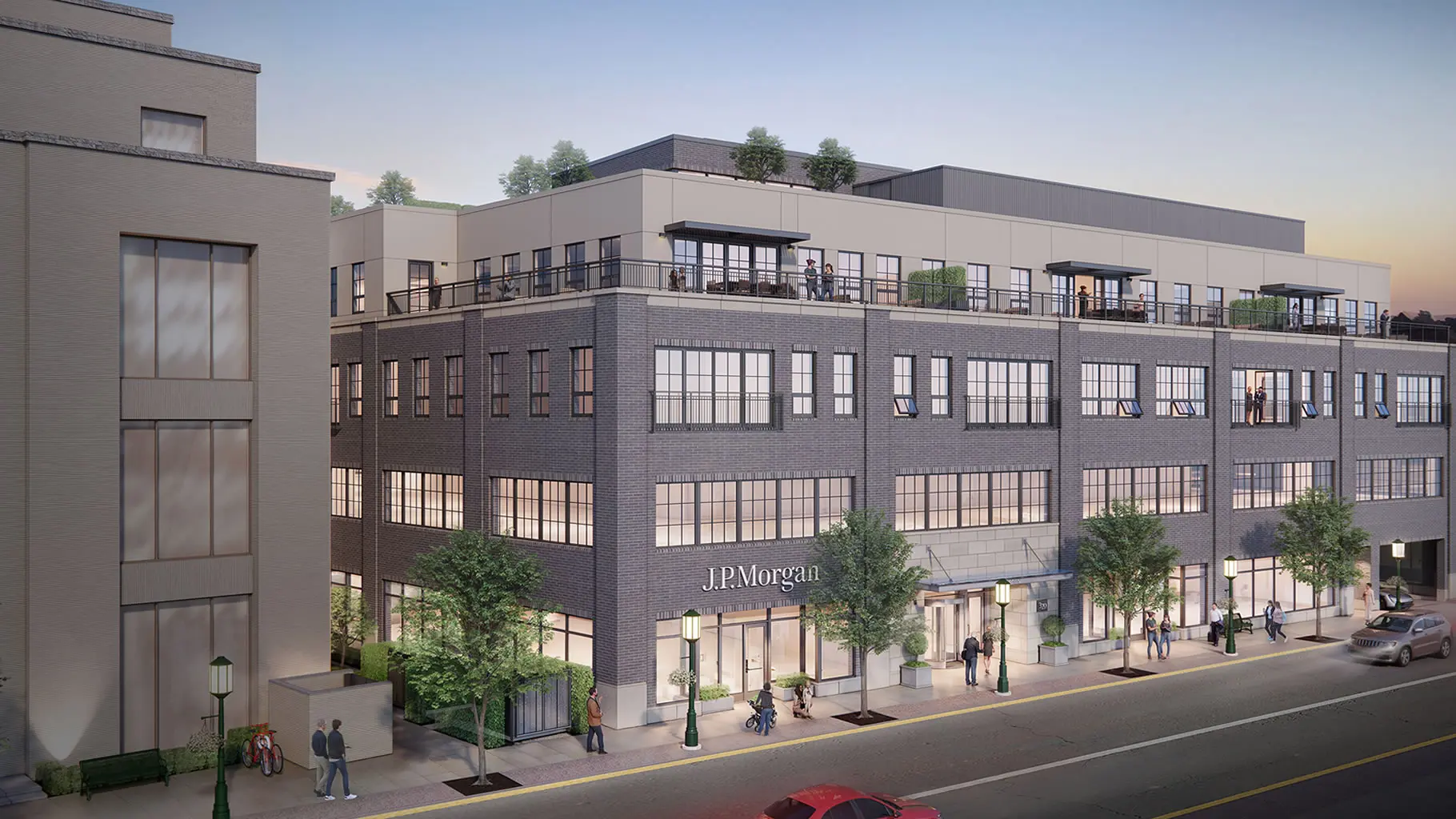 370 Brown will be a new mixed-use development building in downtown Birmingham that will include residential units, office space anchored by JPMorgan Chase, and rooftop amenities. The modern four-story structure, totaling 135,000 square feet, will include a first-level landscaped interior courtyard with a water feature. The pedestrian courtyard, with benches and other amenities, will help bring daylight into the building.